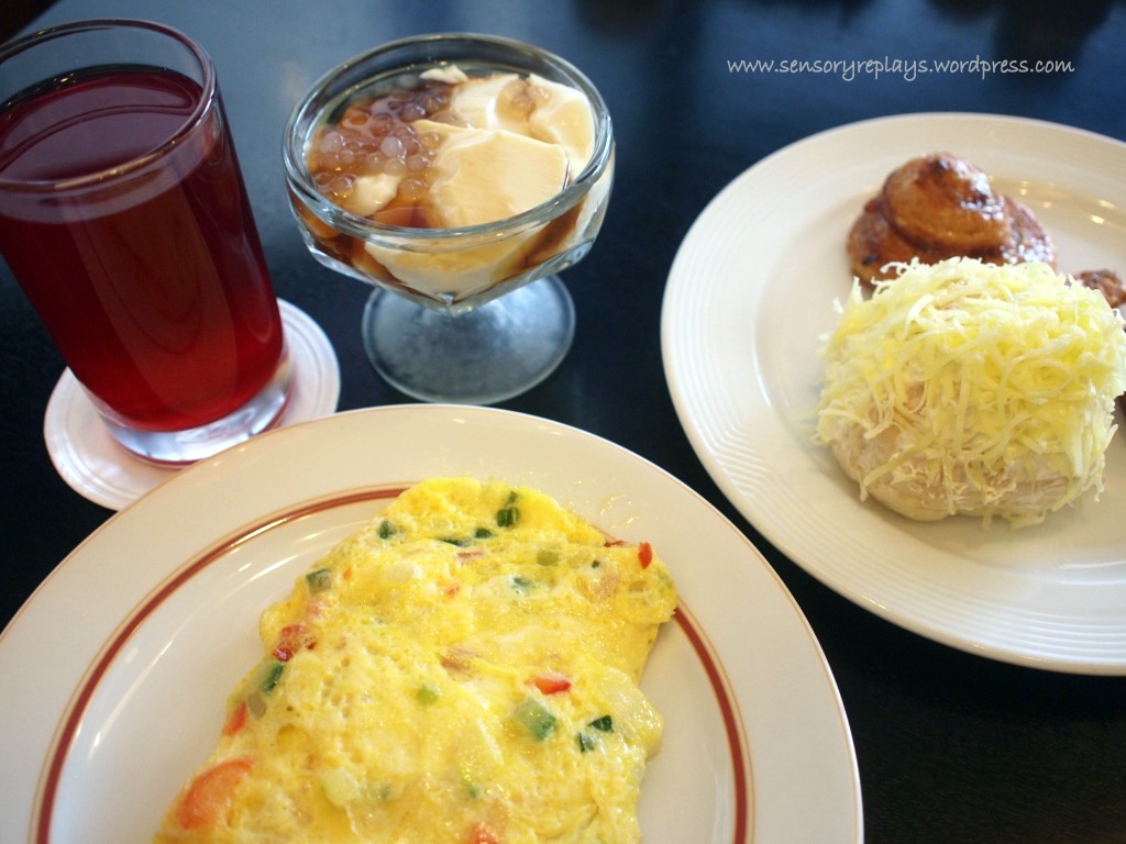 i had some vegetable omelette, cheesy ensaymada, cinammon rolls and taho.