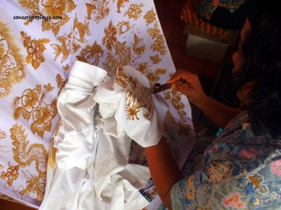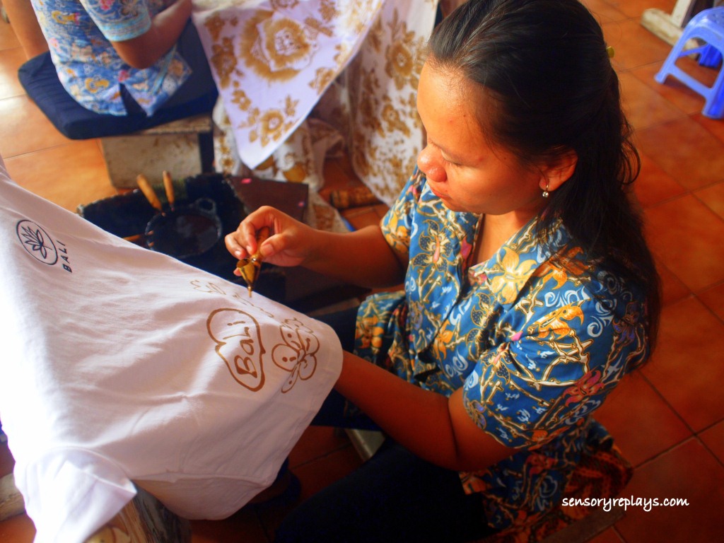 the next day i visited bali bidadari batik were one can see how batik is made. they also have these local women doing artisitic drawings on shirts and weavers.