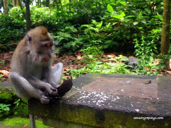 this one was eating some coconut provided by the monkey experts who keep an eye of the safety of both tourists and monkeys.