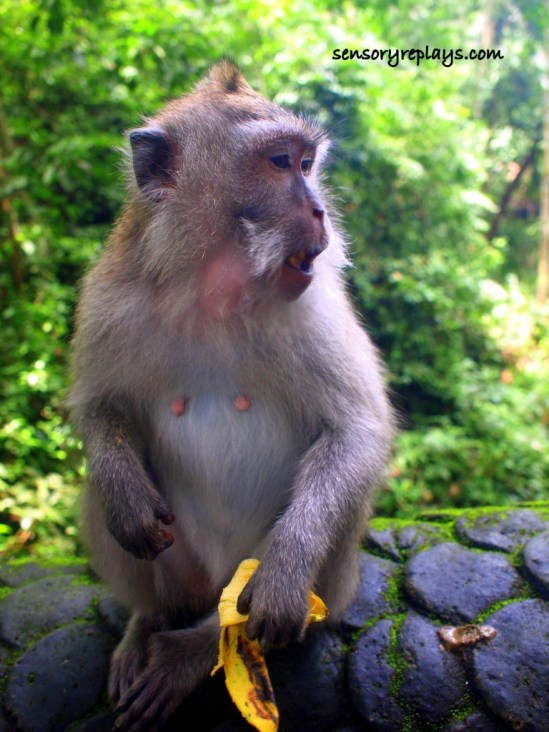 i then went to the sacred monkey forest sanctuary were macaques live free.