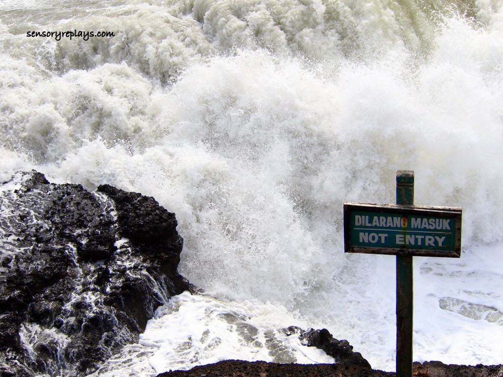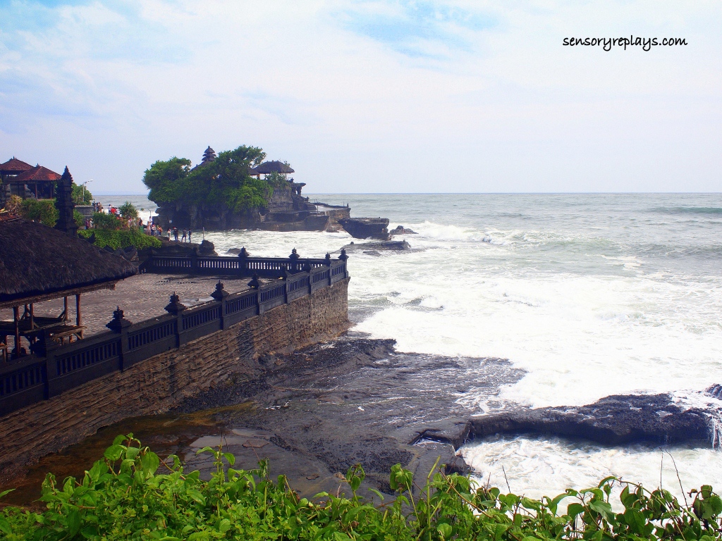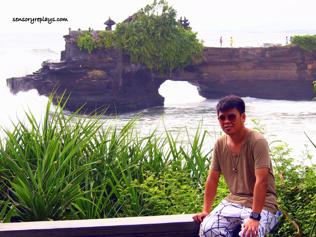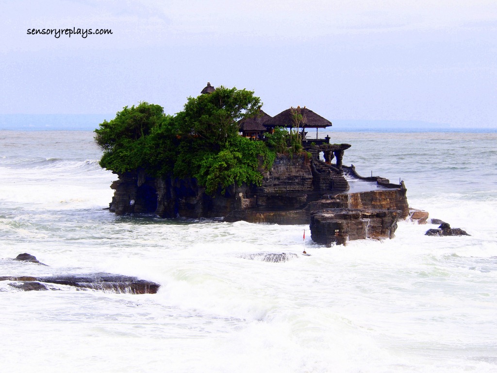 the sun at midday was so hot when i reached tanah lot, a famous rock formation.
