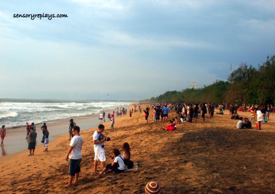 kuta beach is as crowded as our own boracay, but a white wall fence (worth 4 billion indonesian rupees) separates it from the main road of cafes and restaurants. it is said that it was built to prevent sand from blowing off to the establishments but it actually ruined the beach view if you will be dining in one of the restaurants or sit in one of the cafes.
