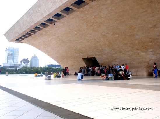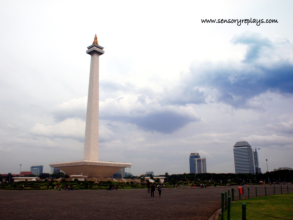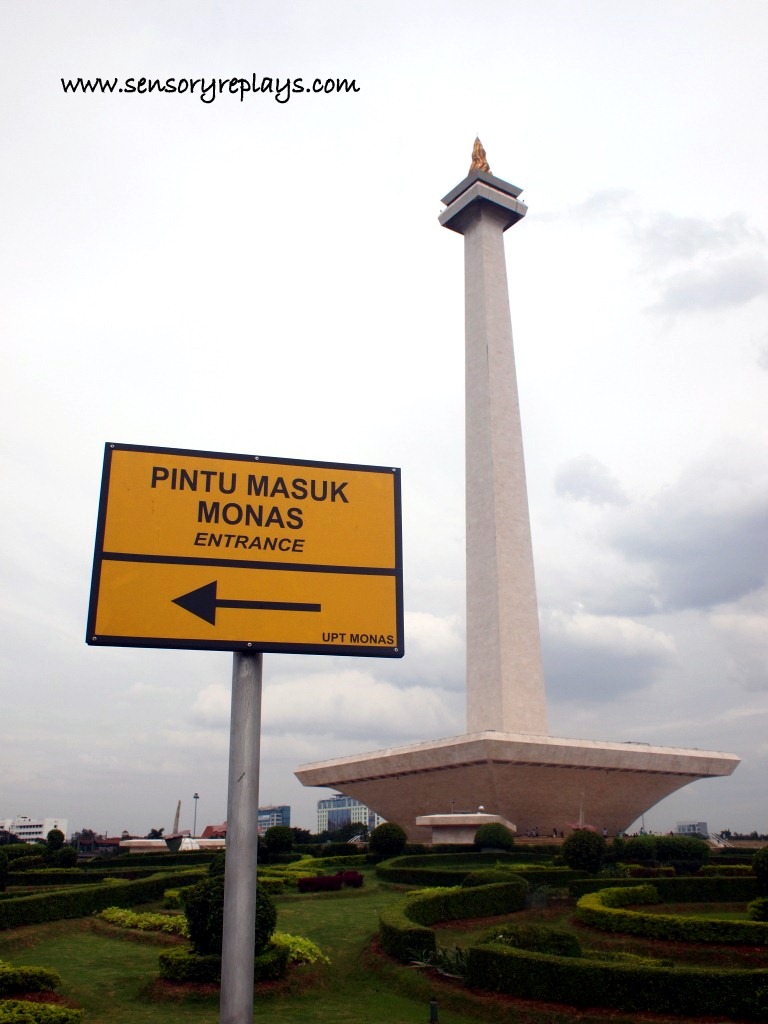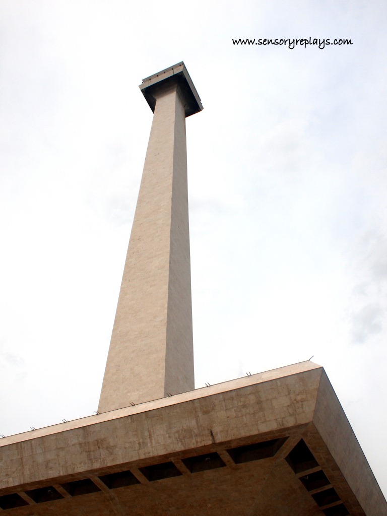 The towering monument encapsulates the philosophy of Lingga and Yoni. Lingga resembles an alu rice pestle and Yoni resembles a lesung rice mortar, two important traditional Indonesian tools. Lingga and Yoni also symbolize eternal life with the lingga phallic symbol, representing masculinity, positive elements, and daytime and the Yoni the female organs symbol, representing femininity, negative elements, and night. The monument consists of a 117.7m obelisk on a 45m square platform at a height of 17m, the goblet yard. ~ from wikipedia