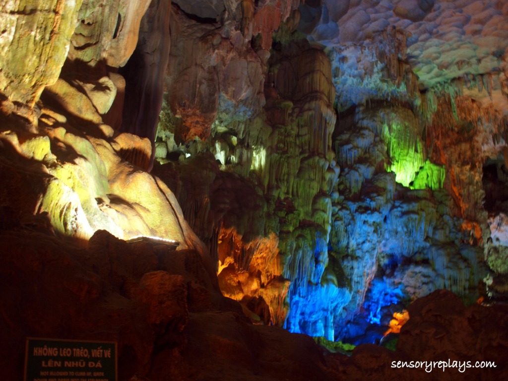 the cave we visited is named as thien cung , a recent discovery as told by our guide. it was illuminated with different colors of lights.