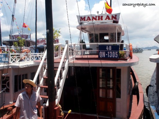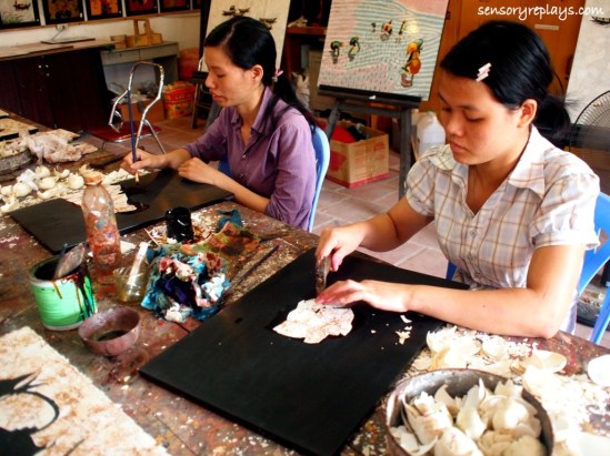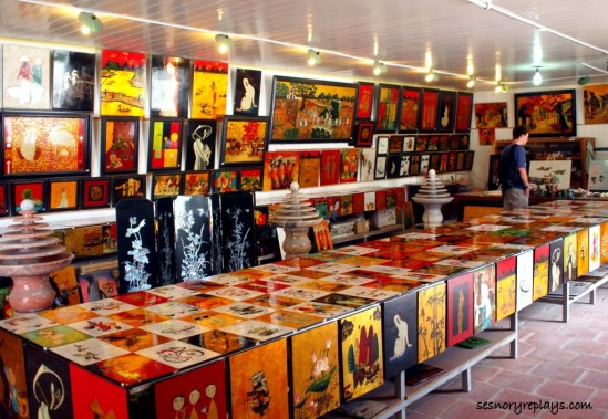 ha long bay, a unesco world heritage site and one of the new 7 wonders of nature is found about three hours ride away from hanoi. mr. duc, the manager from the hotel i was staying on, arranged a day cruise for me which costs $25.00 that included the tour, transport and lunch. i was ready by 8:00 in the morning and the tour guide personally fetched me in the waiting area of charming hotel and directed me to a van parked nearby. when i boarded the vehicle, there were already other tourists inside because it was a group tour. we were asked by the guide to introduce ourselves and which country we were from. our group consisted of a french couple with their three adolescent children, a middle-aged british guy and some local vietnamese. about mid-way to our destination, we had a short stop at a restaurant and souvenir shop where some handicrafts are mostly made by disabled people. it was not allowed to take pictures but when i was in the lacquerware workshop, they let me snap a few shots.