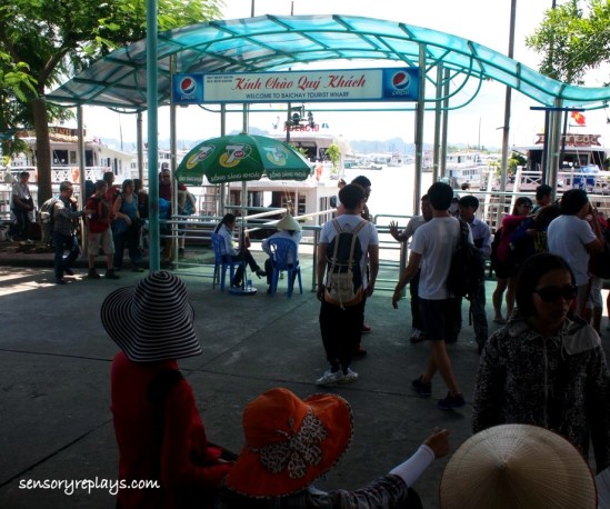 we continued our travel to ha long and we arrived the port. the tour guide distributed our tickets and we waited for our boat.