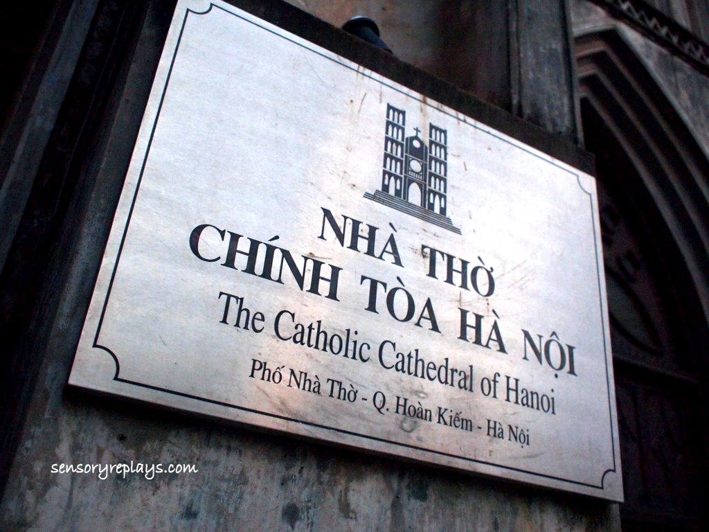 the cathedral is located in hoan kiem district.  it creates an interesting fact that between the busy streets and the bustling of people and many motorbikes of the old quarter, a solemn, beautiful edifice exists.