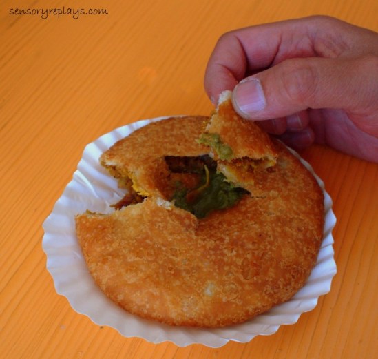 i also had some kachori, a rajasthani spicy delicacy.  it is a flattened round baked flour with stuffing on it.  i was not sure what was the stuffing made of but i find it delicious.
