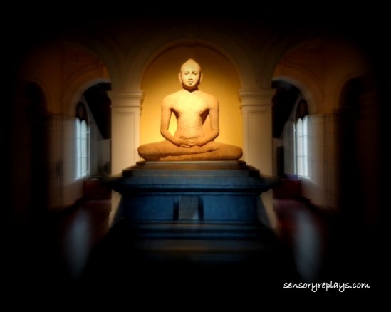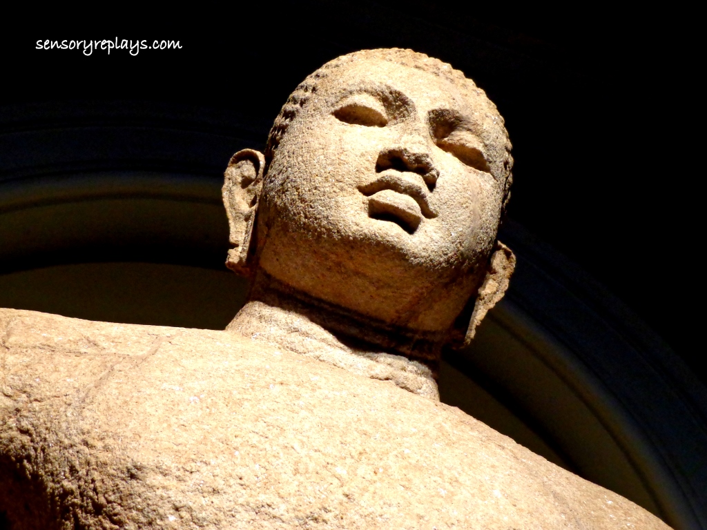at the entrance of the museum is a limestone image of buddha from 800AD.  its composure denotes its perfect mental state.