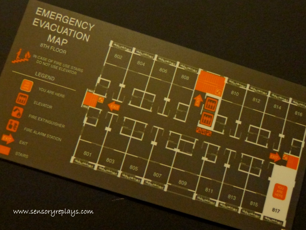 the emergency evacuation map – always think of your own safety!  i do orient myself on this stuff and my room was exactly beside the fire exit door.