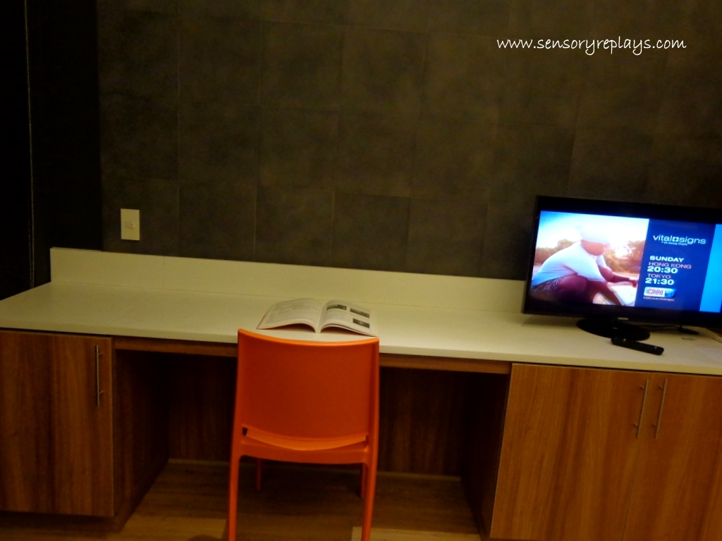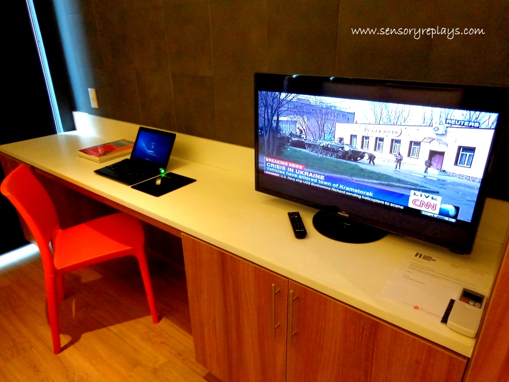 the work desk  area (no drawers!) and the flat tv with complete cable channels.