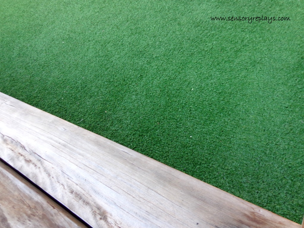 faux grass, no need to water!  too artificial, but looks good in pictures though.  i forgot to check if the potted plants were also fake.