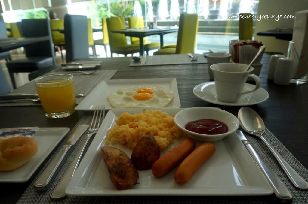 i had buffet breakfast in one of their restaurants, square one.  located on the lower ground level, it offers a view of the hotel gardens through floor-to-ceiling windows.