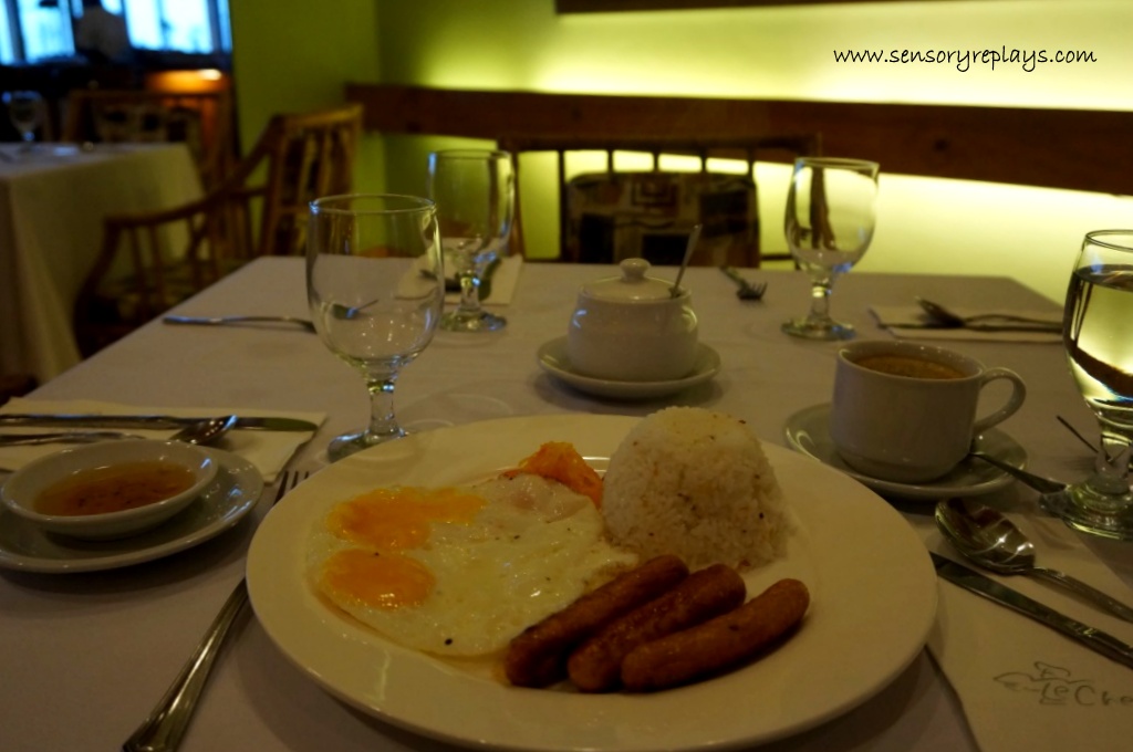 i ordered chicken sausage (its the usual one you get from the deli section of supermarkets) which included two sunny side eggs, garlic rice and brewed coffee.